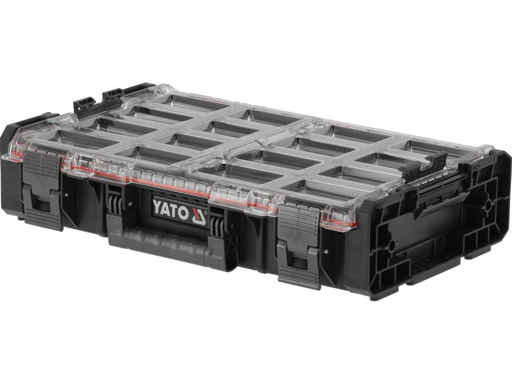 Systémový organizér umožňuje pohodlné skladování a přepravu drobných předmětů. Organizér s odolným polykarbonátovým krytem určeným k uložení drobného příslušenství, 12 vyjímatelných přihrádek na drobné předměty, přizpůsobené k zavěšení na stěny nářadí. Technická data rozměry585 x 387 x 131 mm... przeczytaj całość