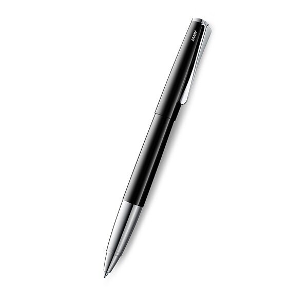 Lamy Studio - elegantní ukázka, kdy se design blíží umění. Zcela nová interpretace a výjimečně přitažlivé tvary inspirované moderními výtvarnými formami. Leskle černé lakované tělo,z nerezové oceli. Klip z nerezové oceli v originálním tvaru vrtule.Roller:nasazovací víčkospojuje dojem plnicího...
