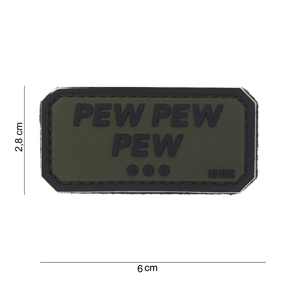 Gumová nášivka 101 Inc nápis Pew Pew Pew - olivová