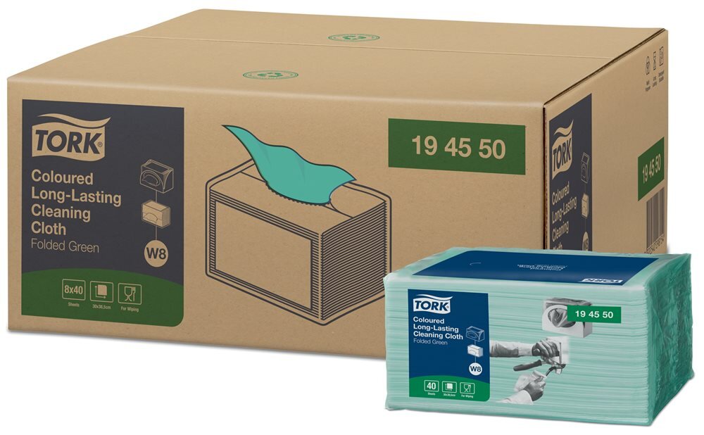 Utěrky čisticí skládané Tork, barevný program, 40 ks, 38 x 30 cm, zelené, W8