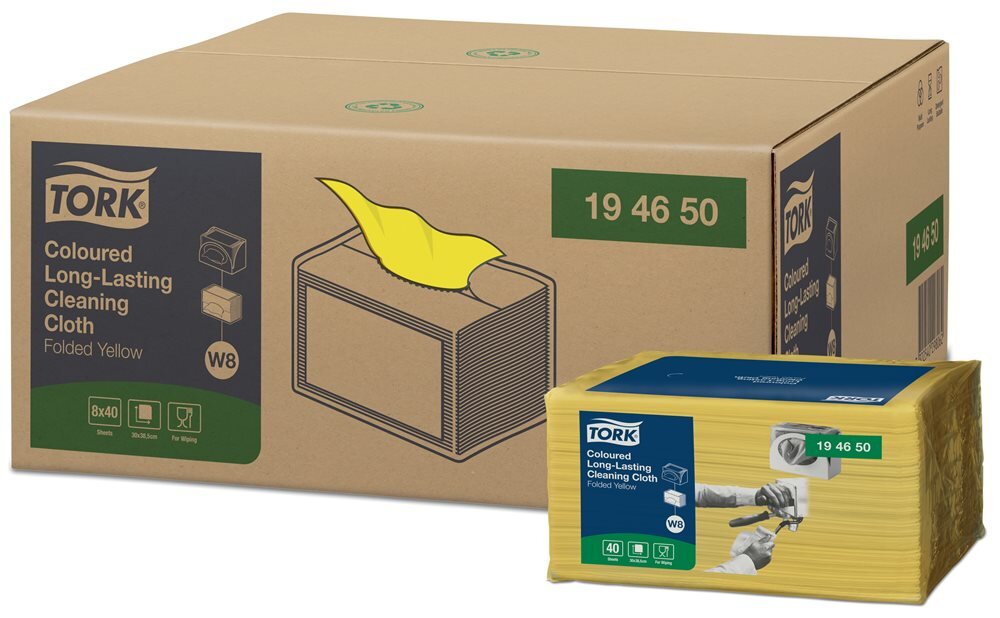 Utěrky čisticí skládané Tork, barevný program, 40 ks, 38 x 30 cm, žluté, W8