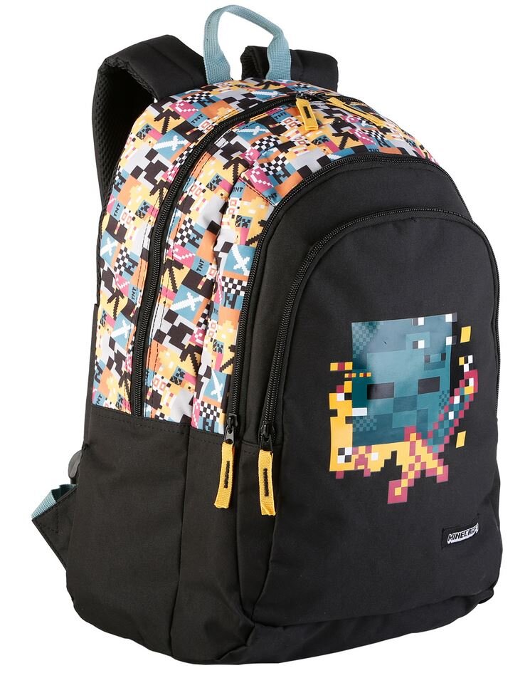 Oficiální produkt - školní batoh z katalogu zboží s licencí populární počítačové hry Minecraft.Zboží je legálně licencováno a prodáváno se souhlasem vlastníků licenčních práv.Černý batoh s barevnými detaily vyvedený v grafice postav ze hry Minecraft. Má jednu hlavní kapsu a dvě přední menší kapsy...