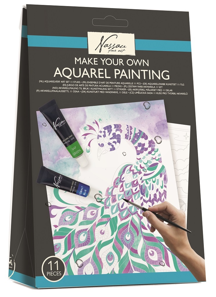 Balení obsahuje: 6 ks akvarelových barev, 12 ml - bílá, černá, modrá, zelená, žlutá, červená,2 štětce,3 archy - předkreslená zvířata 14 x 21 cm - páv, lev, velryba.Velikost balení 15 x 23 cmChcete získat jinou barvu než je v balení? Namixujte si širší paletu barev podle barevného spektra. przeczytaj całość