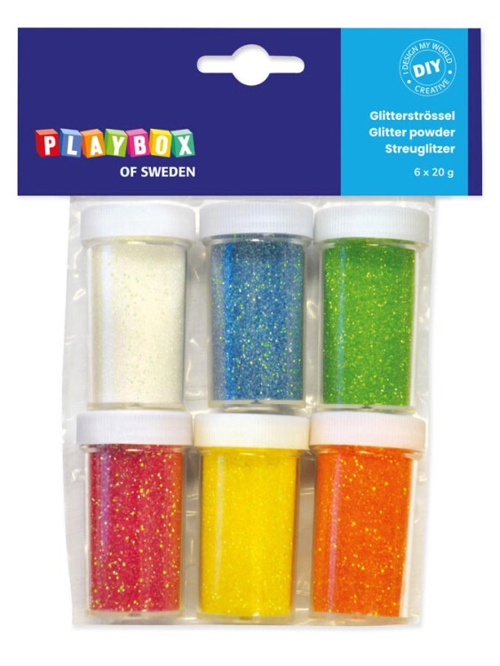 Barevný pastelový jemný  třpytivý písek.Obsahuje : 6 ks á 20g (  žlutá, růžová, oranžová, zelená, modrá, sněhová (bílá)Materiál: PET przeczytaj całość