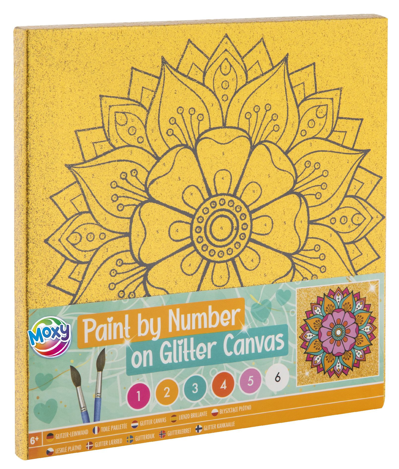 Zestaw zawiera: płótno z naniesionym szkicem - złote, brokatowe 25 x 25 cm, 6 farb akrylowych, 2 pędzle. przeczytaj całość