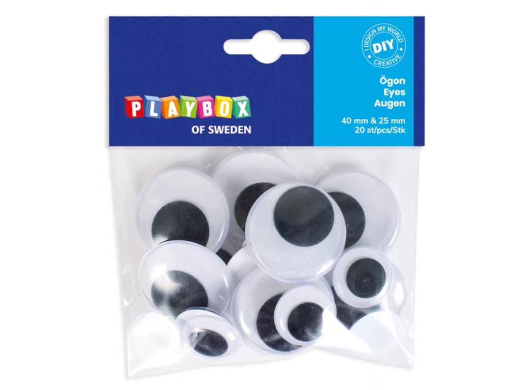 Ruchome czarno-białe oczy - samoprzylepne, 40 mm i 25 mm, 20 szt. przeczytaj całość