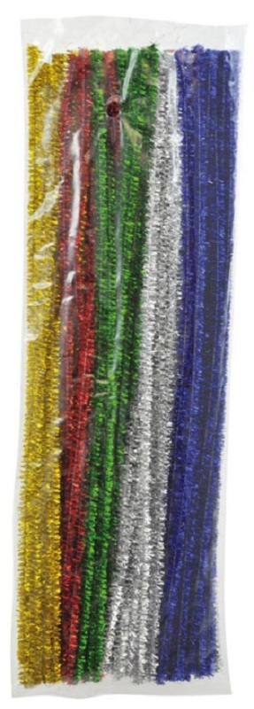 Opakowanie zawiera 90 szt. brokatowych drutów - czerwony, zielony, złoty, srebrny, niebieski, 30 cm o Ø 6 mm.