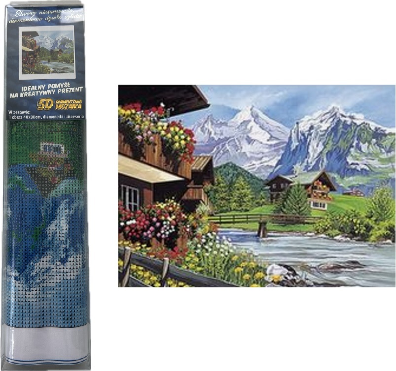 Odkryj radość tworzenia z obrazem diamentowym Chatka w górach przy strumieniu!