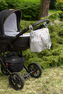 Torba wyposażona jest w kilka wewnętrznych kieszeni i funkcjonalnych przegródek, co umożliwia doskonałe uporządkowanie wszystkich potrzebnych rzeczy. Uniwersalne metalowe uchwyty pozwalają na łatwe zawieszenie na stelażu wózka, a praktyczny regulowany pasek na ramię gwarantuje wygodne noszenie w każdej sytuacji.