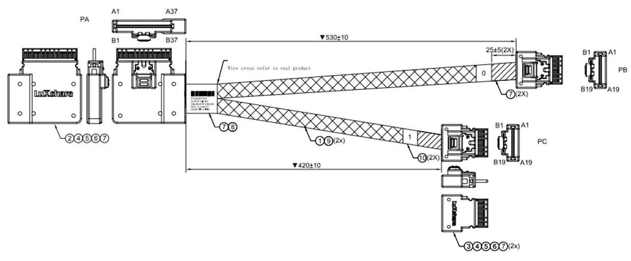 SFF-8654-8i (SlimSAS ×8) zalomený -> 2×SFF-8654-4i (SlimSAS ×4) rovný, 42/53cm, 100ohm kabel (SATA/SAS)