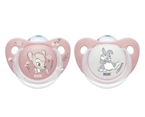 Smoczek NUK Trendline Disney Classics Bambi:• ulepszony anatomiczny kształt NUK – wzorowany na kształcie brodawki sutkowej matki w czasie karmienia piersią, optymalnie dostosowuje się do jamy ustnej dziecka w czasie ssania• cieńsza i węższa szyjka smoczka zmniejsza nacisk na szczękę i zęby•...