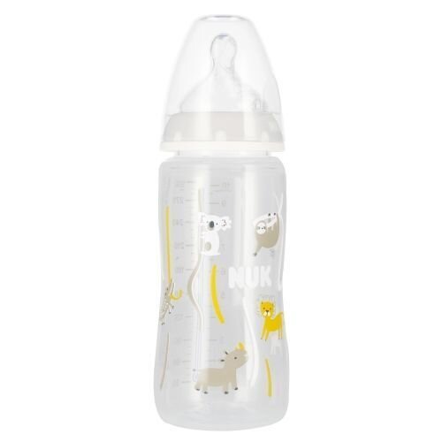 Butelka First Choice+ z wbudowanym wskaźnikiem temperatury zmienia swój kolor w zależności od temperatury zawartości butelki: jeżeli pokarm jest za gorący, wskaźnik, który zwykle jest niebieski zmienia kolor na biały. Wskaźnik temperatury NUK jest przewidziany jako dodatkowa weryfikacja. Prosimy...