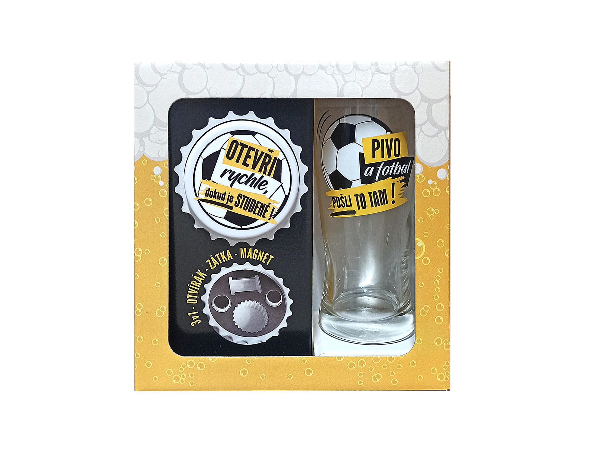 Dárkový balíček pro milovníka piva a fotbalu obsahuje pivní půllitr a praktický otvírák.Rozměr balení: 190 x 85 x 190 mm przeczytaj całość