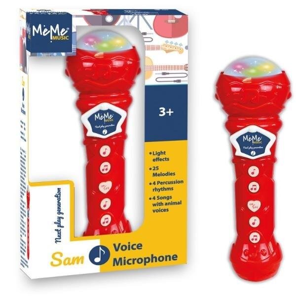 Mikrofon sceniczny. Posiada 25 piosenek demo, 4 zwierzęce piosenki oraz 4 rytmy perkusyjne. Możliwość włączenia efektów świetlnych. Baterie nie są częścią zestawu. przeczytaj całość