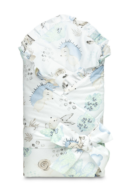 Dwustronny rożek niemowlęcy z falbanką został stworzony z myślą o noworodkach i niemowlętach. Wiązane zapięcie z szeroką bawełnianą tasiemką umożliwia wygodne trzymanie dziecka podczas karmienia i usypiania. Po rozłożeniu, rożek może być z powodzeniem stosowany jako kołderka do łóżeczka czy wózka...