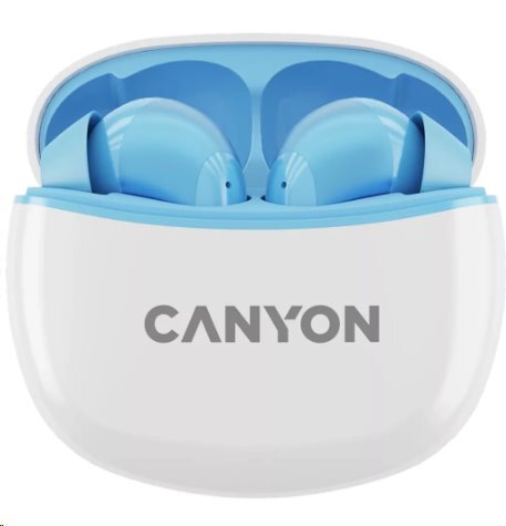 CANYON TWS-5 BT sluchátka s mikrofonem, BT V5.3 JL 6983D4, pouzdro 500mAh+40mAh až 38h, modrá