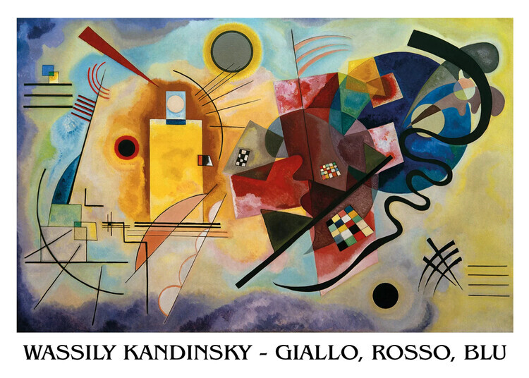 Umělecký tisk Žlutá, červená, modrá, Kandinsky, 70 × 50 cm