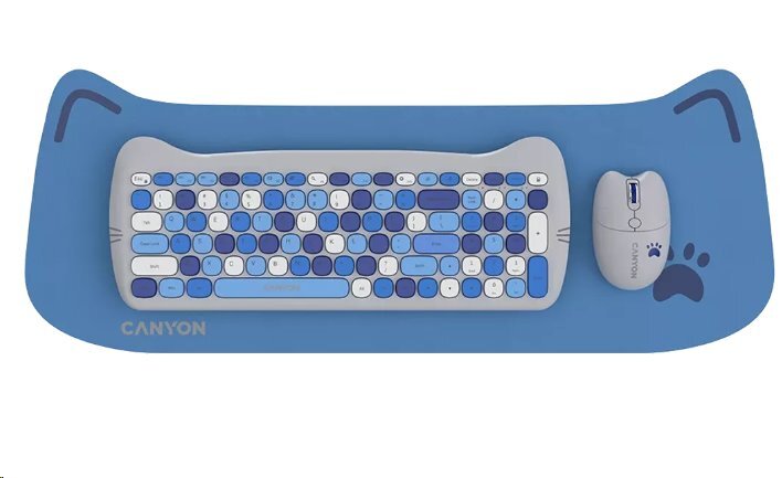CANYON Kitty edice HSET-W6, bezdrátový SET CS klávesnice + optická myš + ochranné pouzdro + podložka, modrá