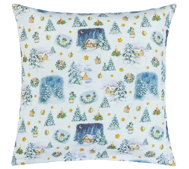 Povláček Vánoce - Domeček, krajina zasněžená - 45x45 cm