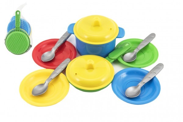 Sada nádobí plast barevné 12ks v síťce 12m+
