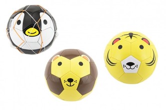 Míč fotbalový obličej zvířátko nafouklý šitý 22cm vel. 5 kůže 3 druhy v síťce