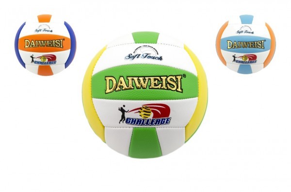 Míč volejbalový nafouklý šitý kůže 20cm 3 barvy v sáčku (1kus)