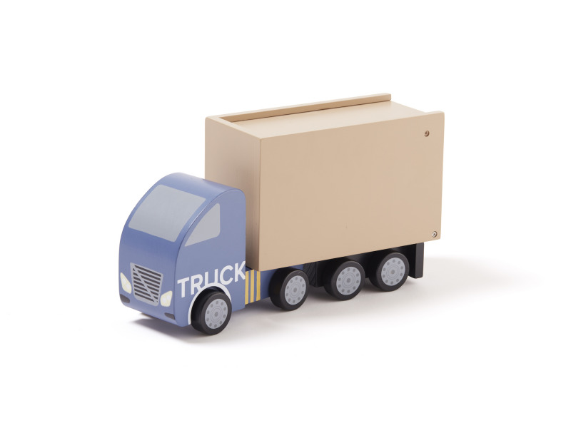 Dřevěný náklaďák v krásném designu má tvar pro snadné uchopení. Návěs má posuvnou otevírací horní část pro naložení nákladu a výklopnou plošinu vzadu, po které do něj např. mohou vjíždět autíčka. Návěs je možné od tahače odpojit.Náklaďák můžete doplnit o další výrobky ze série dřevěných hraček...