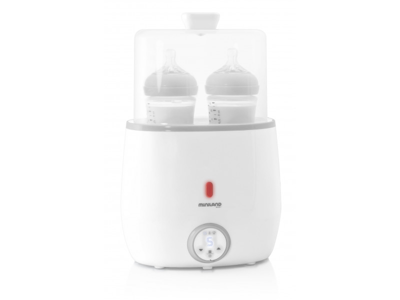 Ohřívačka pro dvě kojenecké láhve Miniland Warmy Twin je ideální řešení pro rodiče dvojčat. Ohřívačka rychle a snadno ohřeje či sterilizuje současně dvě kojenecké lahvičky nebo skleničky s příkrmem.Ohřívačka mléko či příkrm jemně a šetrně ohřívá pomocí páry, takže veškeré nutriční hodnoty mléka i...