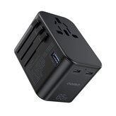 Adapter podróżny Choetech PD5009-BK GaN EU / US / UK / AU 2x USB-C USB-A 65W PD - czarny