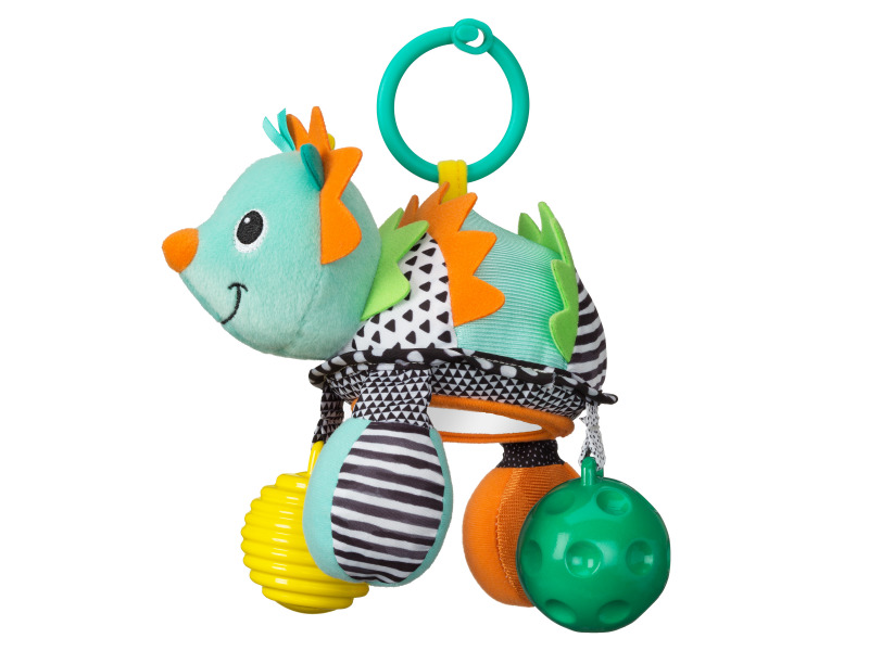 Roztomilý ježek upoutá pozornost dítěte svými výraznými barvami, chrastěním při pohybu i bezpečným zrcátkem na bříšku. Různorodé textury lákají dítě ke zkoumání. Dvě nohy ježka jsou tvořeny míčky s výraznou strukturou pro zkoumání rukama i ústy.Hračku je možné zavěsit na autosedačku, kočárek či... przeczytaj całość
