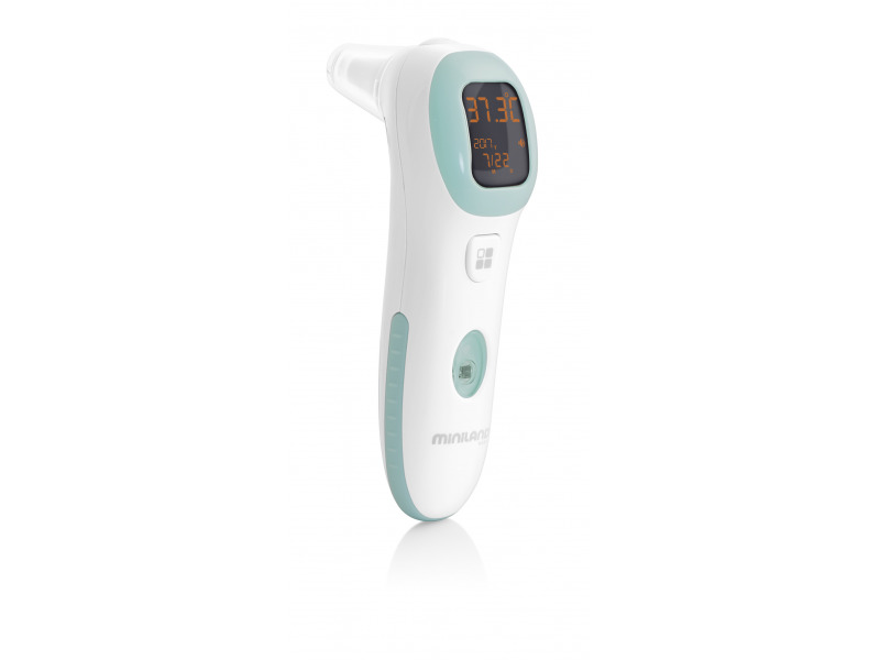 Ultrarychlý infračervený teploměr Miniland změří teplotu i puls. Měření teploty na čele nebo v uchu dítěte trvá pouhou jednu sekundu. Po přiložení palce dokáže do 15 sekund změřit i váš puls.Výsledky měření teploměr dokáže přečíst nahlas v jednom ze 6 jazyků (španělština, angličtina, němčina,...