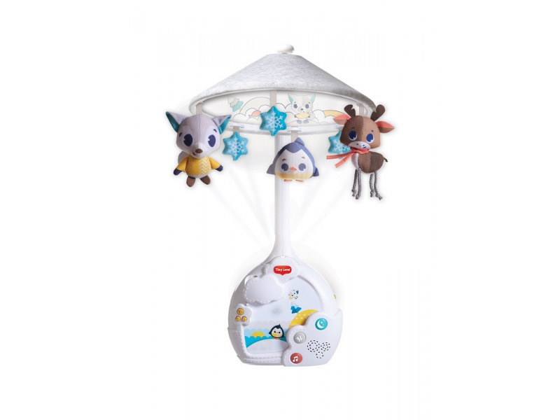 Hudební kolotoč Tiny Love s odnímatelným hudebním přehrávačem a světelnou projekcí na stříšku kolotoče nebo na strop. Hudební box nabízí 9 různých melodií v celkové délce 30 minut. Možnost nastavení hlasitosti hudby. Zavěšené otáčející se postavičky upoutají pozornost dítěte v postýlce. Spolu s...