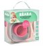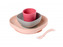 Zestaw talerza, miseczki, kubeczka do picia i łyżeczki z wysokiej jakości silikonu jest idealny na pierwsze samodzielne karmienie. Przyssawka przy miseczce i talerzu umożliwia przymocowanie do stołu lub tacki krzesełka do karmienia. Ergonomiczny kształt ułatwia nabieranie pokarmu. Miękki silikonowy materiał jest bezpieczny i przyjemny w użyciu. Odporne na wysokie i niskie temperatury i niełatwo ulega przebarwieniom od barwiących pokarmów.