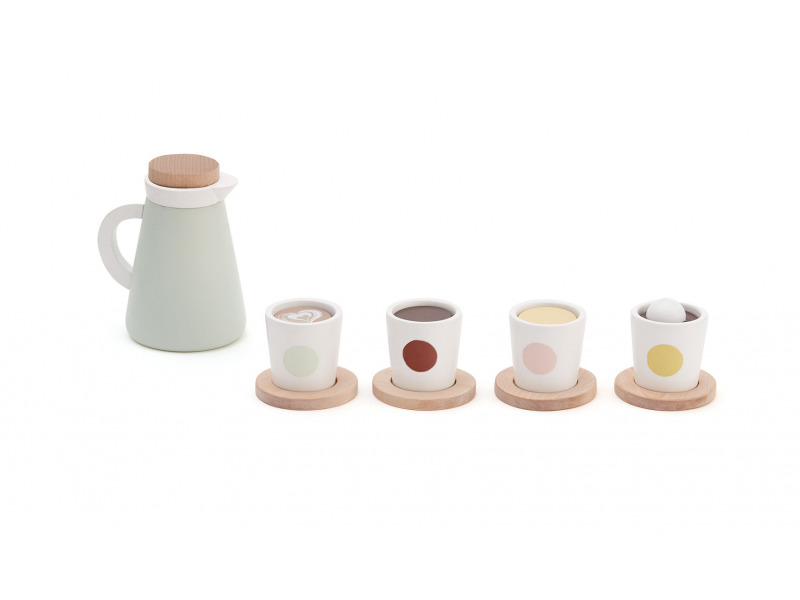 Konvička se čtyřmi šálky a podšálky pro stylové servírování kávy či čaje při dětské party. Konvička s šálky je součástí ucelené kolekce dřevěných hraček Kids Concept Bistro.Rozměry: 16 x 8,5 x 20 cmVhodné pro děti od 3 let. przeczytaj całość