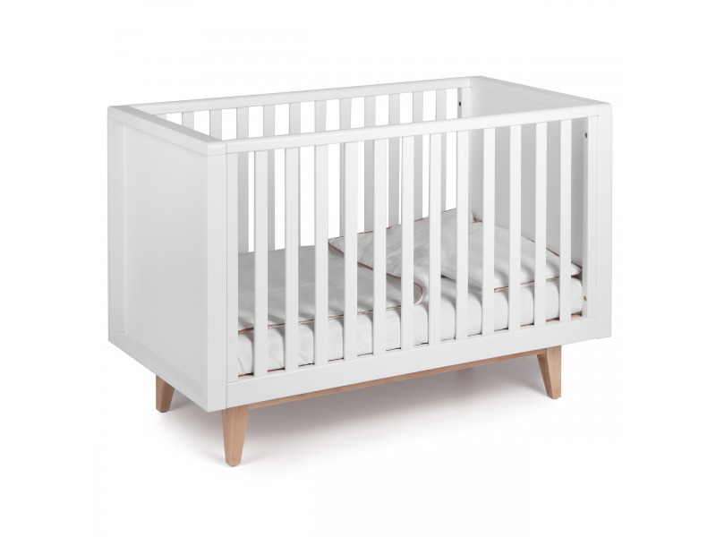 Dětská postýlka z kolekce Troll Scandy s možností úpravy boční strany pro samostatné vylézání dítěte.