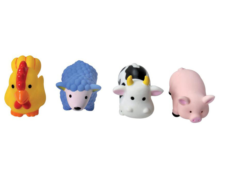 - Zawiera 4 pryskające zabawki w kształcie zwierzątek z farmy