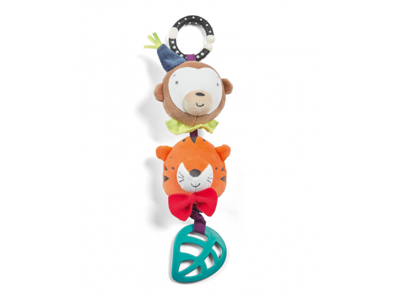 Roztomilý tygřík s opičkou po zatažení za kousátko vibrují. Plastový kroužek umožňuje snadné zavěšení hračky na kočárek či autosedačku. Kousátko pomáhá při prořezávání prvních zoubků.Rozměry: 33 x 10 x 7 cmVhodné pro děti od narození. przeczytaj całość