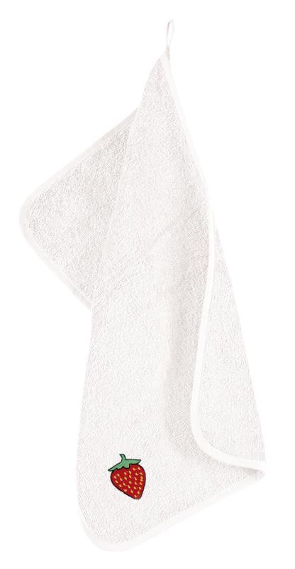 Froté ručník s výšivkou - bílý ručník s výšivku jahůdka - 30x50 cm