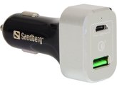 Sandberg USB nabíječka do auta, 1xUSB-C PD + 1xQC3.0 63W, černobílá