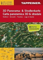 3D Panorama- & Straßenkarte Südtirol - Dolomiti - Trentino - Lago di Garda. Carta panoramica 3D & stradale Südtirol - Dolomiti -
