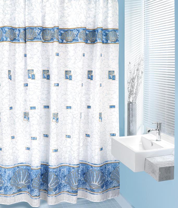 Koupelnové závěsy - modré mušle - 180x200 cm