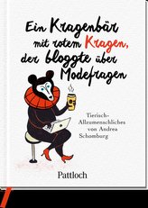 Ein Kragenbär mit rotem Kragen, der bloggte über Modefragen