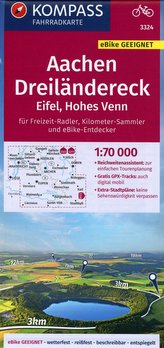 KOMPASS Fahrradkarte Aachen, Dreiländereck, Eifel, Hohes Venn 1:70.000, FK 3324