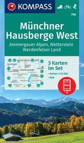 KOMPASS Wanderkarten-Set 796 Münchner Hausberge West, Ammergauer Alpen, Wetterstein, Werdenfelser Land (3 Karten) 1:25.000