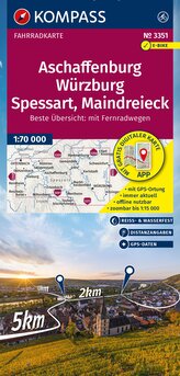 KOMPASS Fahrradkarte 3351 Aschaffenburg, Würzburg, Spessart, Maindreieck 1:70.000