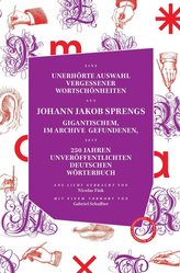 UNERHÖRTE AUSWAHL VERGESSENER WORTSCHÖNHEITEN AUS JOHANN JAKOB SPRENGS GIGANTISCHEM, IM ARCHIVE GEFUNDENEN, SEIT 250 JAHREN UNVE