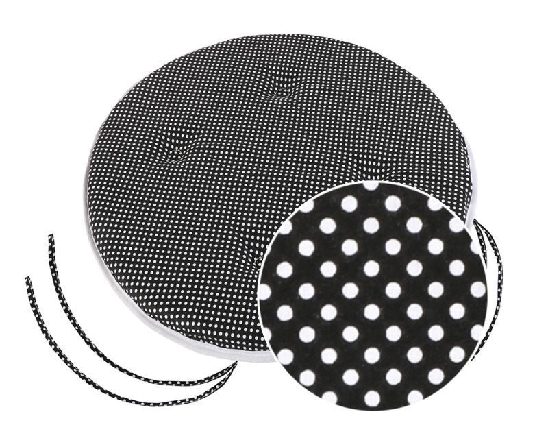 Sedák Adéla kulatý hladký - puntík černobílý - obšitý bílou bavlněnou stuhou - průměr 40 cm