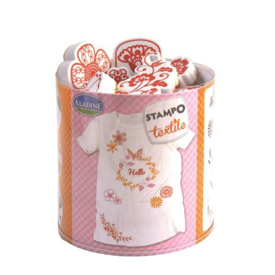 Razítka na textil. Sada obsahuje razítkovací polštářek s textilní barvou. Narazítkované motivy důkladně zažehlete, praní na 40C. Razítka po použití umyjte jemným kartáčkem a vodou. przeczytaj całość