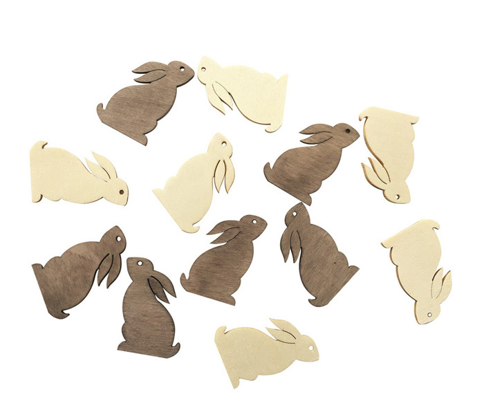 Dřevění zajíčci 4cm - hnědobílý mix 12ks
