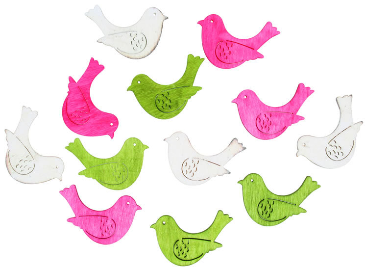 Dřevění ptáčci 4cm - zelenorůžový mix 12ks